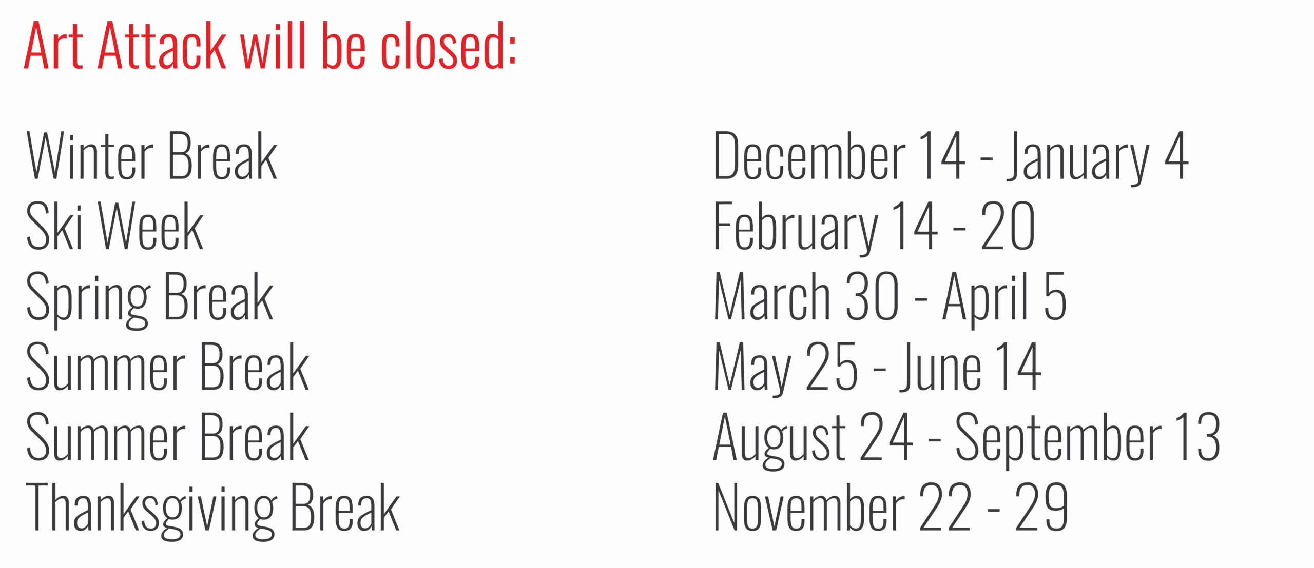 Art Attack Class Calendar